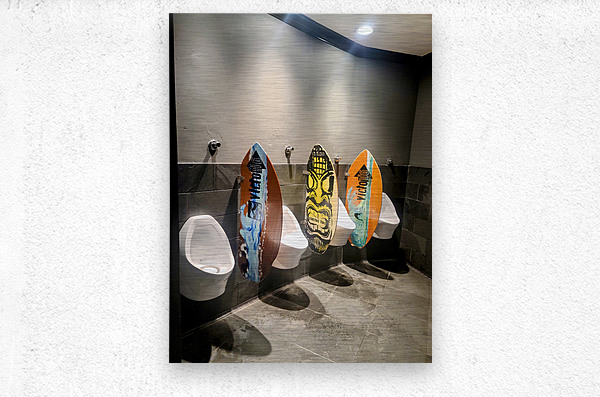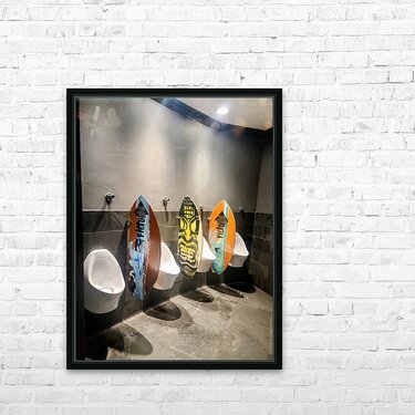 These urinals at the Barefoot Bar & Grill in San Diego at Paradise Point Resort & Spa provides privacy with surfboards as panels. This photograph captures a striking and unconventional artistic twist on an everyday space.The juxtaposition is equal parts functional design and cultural commentary, poking fun at how creativity can sneak into even the most private corners of public life. This is more than a restroom photo; it's a statement about finding joy and surprise in overlooked places. As wall art, this piece serves as an irreverent celebration of playful rebellion—an homage to spaces that defy convention. Perfect for design studios, creative offices, beach homes, or anyone with a wry sense of humor, it reminds viewers that art doesn’t always hang in galleries, it shows up in surfboards, restrooms, and all the places where we least expect it. It's a conversation-starter, a boundary-pusher, and a visual pun, rolled into one vivid photographic composition.