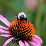 The Bee Collection. A sharp contrast of the golden-orange cone bristles with the soft lavender petals draws the eye in and holds it. The bee, mid-gath...[+]