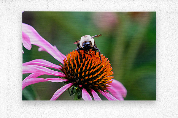 The Bee Collection. A sharp contrast of the golden-orange cone bristles with the soft lavender petals draws the eye in and holds it. The bee, mid-gath...[+]