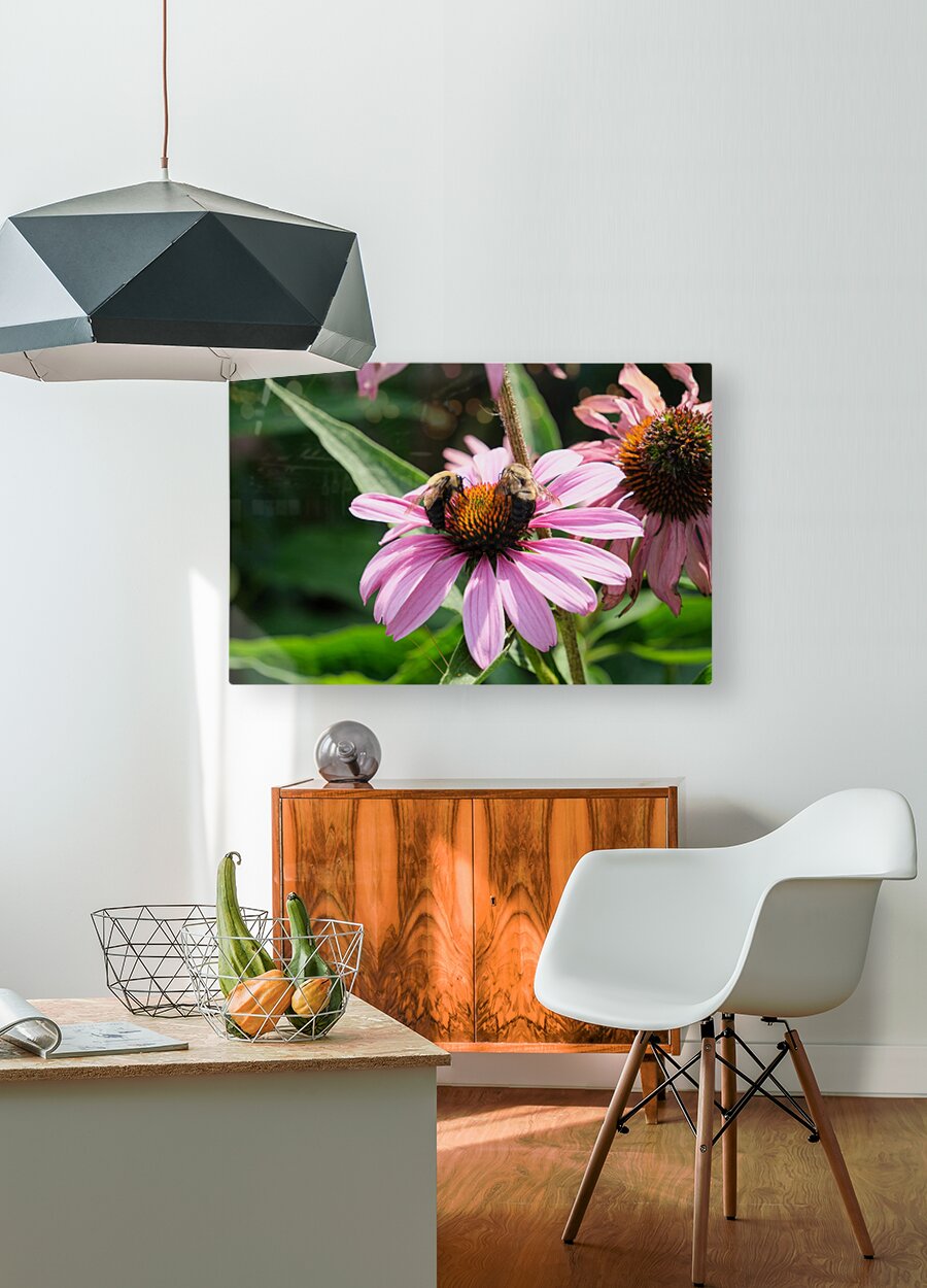 The Harmony of Pollination: Twin Bees on a Purple Coneflower Canvas print