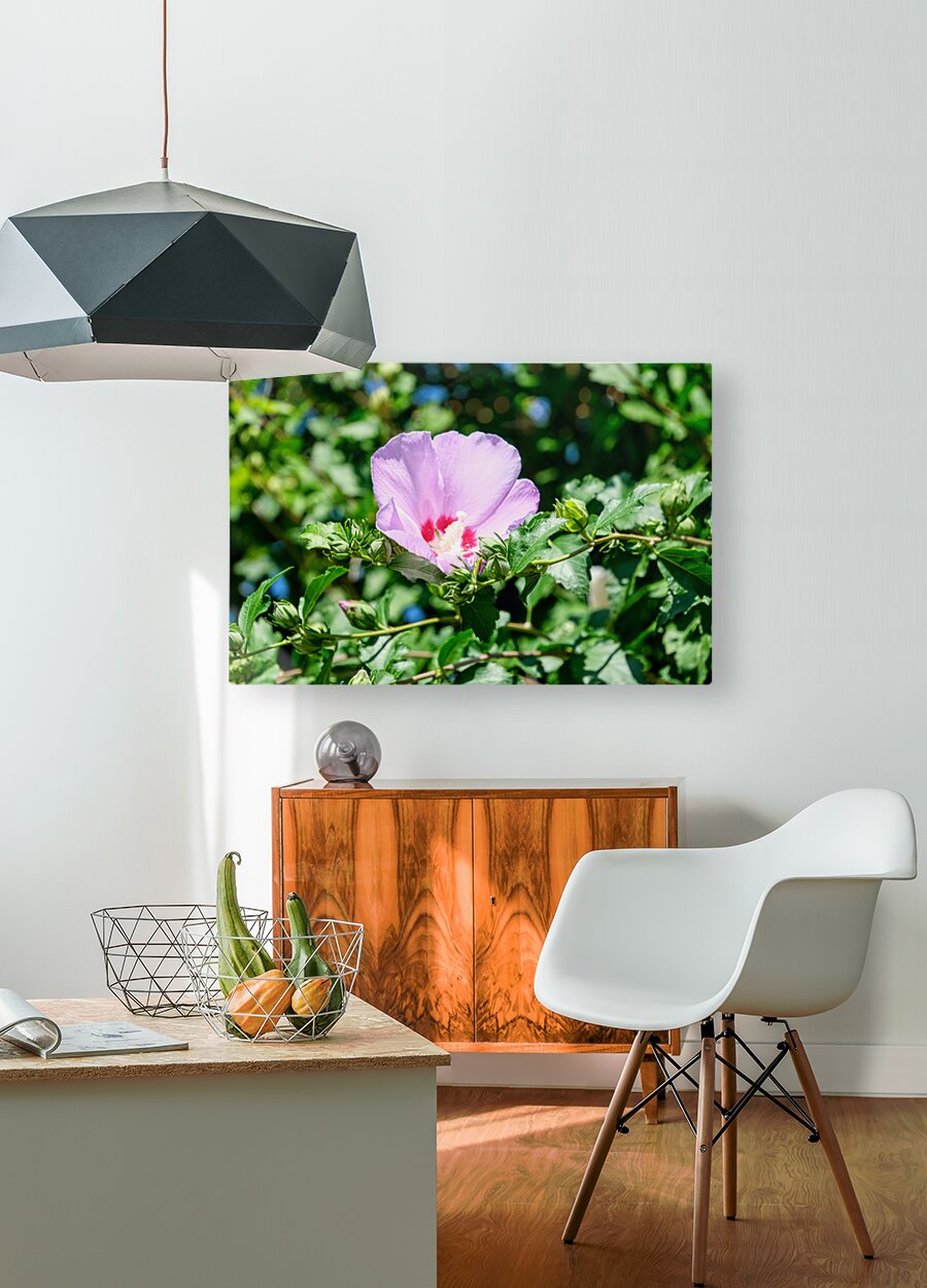 Amidst the layered green, one bloom reaches forward, not aggressively, but with the tender insistence of life itself. The hibiscus, in this fleeting lavender moment, becomes a doorway. A place where time folds gently and the viewer is invited to listen to the garden’s heartbeat soft, sure, and steady. This photograph speaks to those drawn to subtle beauty. As wall art, it becomes an invitation to slow down. To connect with the rhythms of nature that mirror our own. Ideal for calm workspaces, artistic lounges, or any room seeking quiet affirmation of presence and growth.