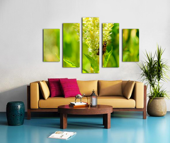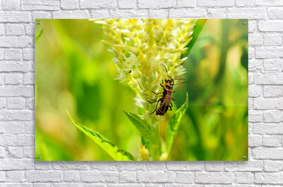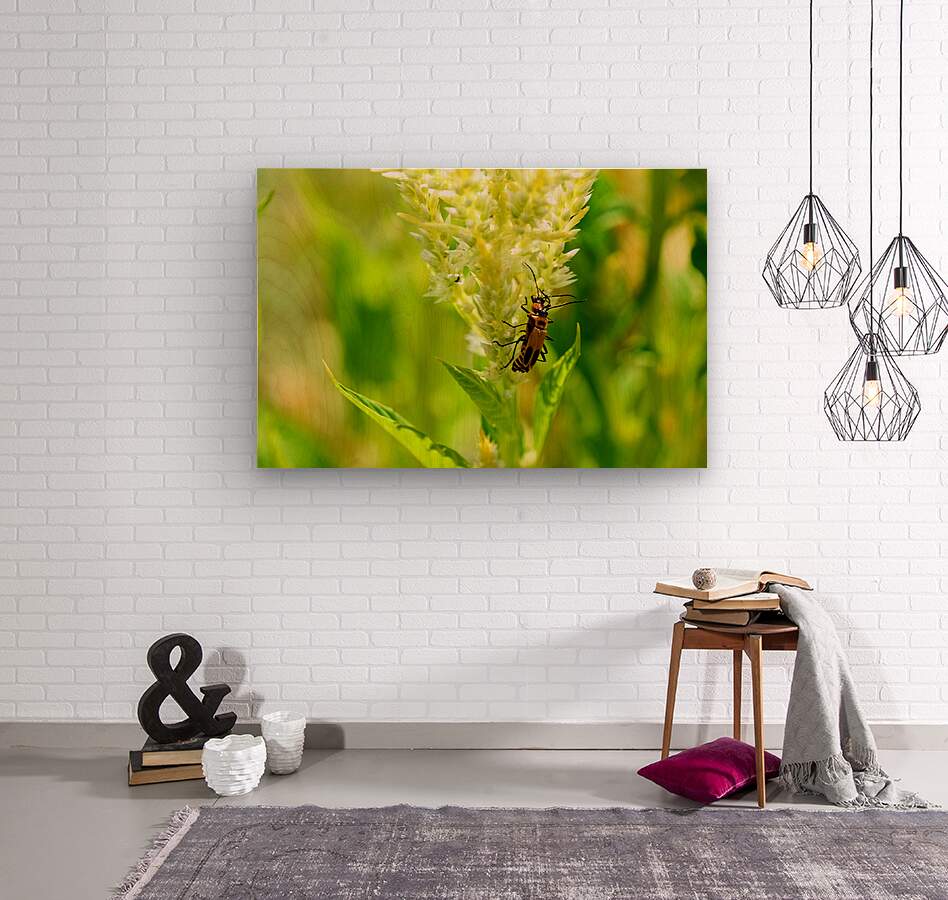 While fireflies are often imagined only under the veil of night, this image reveals one in the light a guardian of the garden’s quiet flame. Bathed in gold, the insect becomes both wild and mythic, as if it’s holding a spark borrowed from the sun. The plant, too, glows like a candle wick, alive, alert, and radiant. More than just decor, this piece is a meditation in motion. It transforms any wall into a story of strength in delicacy and magic in the mundane. It brings a touch of the surreal into grounded spaces a brilliant way to inspire curiosity and awe every day.