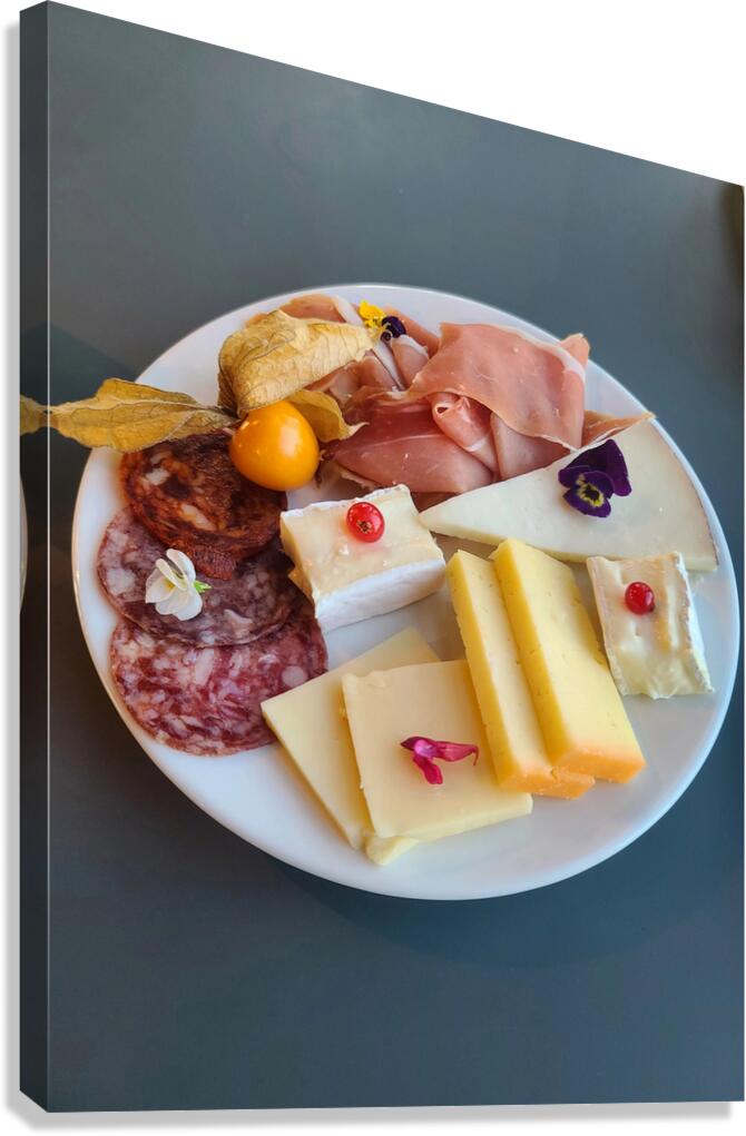 A blooming celebration of culinary design, this plate presents more than a meal, it’s a garden of flavors. Petal-strewn cheeses, earthy cured meats, and golden fruit create a tapestry that pleases both palate and eye. Styled with the eye of a painter, this is food as emotion, food as art. Displaying this image brings a fresh energy to the room, one that mixes nourishment, nature, and celebration. Ideal for spaces where creativity and taste intersect, it reminds us to find beauty in the smallest details, even those we eat.