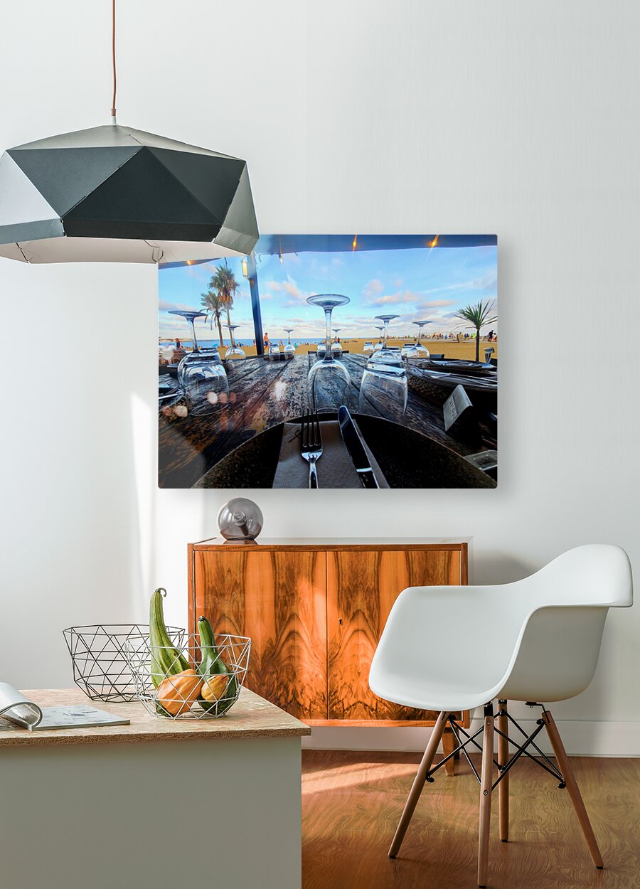 Barcelona Travel Collection. This was taken at the Cordoba Restaurant in Barcelona. This is not just a table it’s a throne room of the sea, reserved not for royalty, but for reverence. Set with precision, yet untouched by time, this seaside dining arrangement becomes a symbolic stage for nature to perform: the breeze, the waves, the clouds… all dining in silence. Hung in any room where space, breath, and meaning matter, this piece reminds you that some places and moments are simply meant for being. It calms the eye and centers the spirit, offering a daily reset in visual form.
