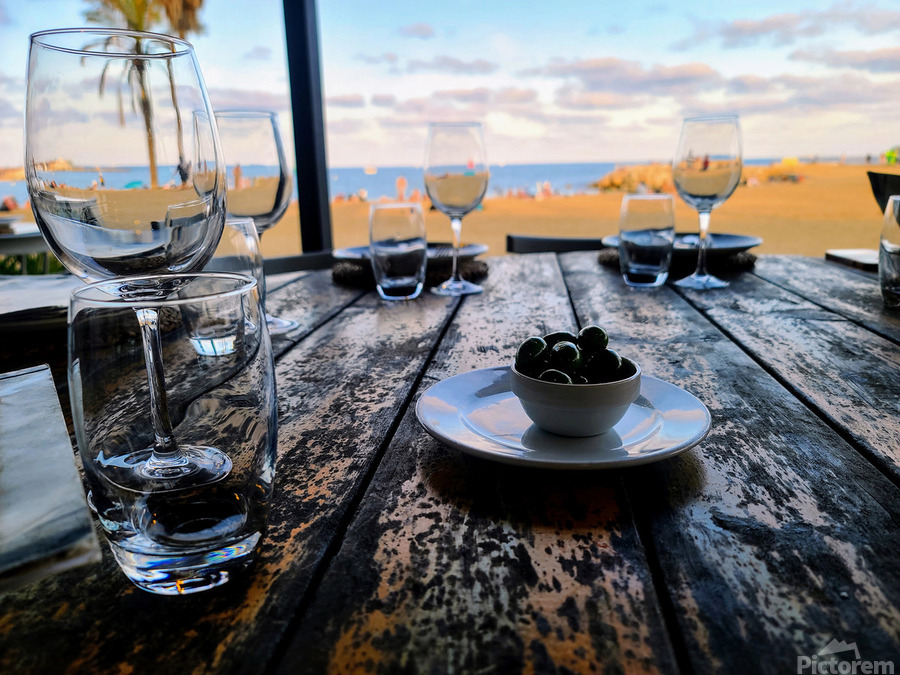 Barcelona Travel Collection. This was taken at the Cordoba Restaurant in Barcelona. A bowl of olives becomes a focal point—unassuming, yet refined—while the reflections in glass hint at waves and conversation just out of frame. This piece speaks to those who appreciate intentional living—it transforms any wall into a soft invitation to slow down, savor the present, and embrace imperfection as elegance. Whether in a kitchen, dining area, coastal retreat, or minimalist space, it acts as a visual exhale—an anchor to mindfulness and a homage to the richness of the simple.