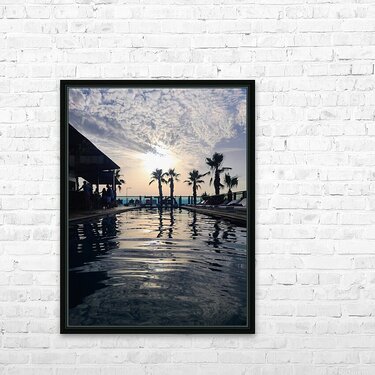Step into the Last Light Lounge where conversations stretch as long as the shadows, and the horizon glows with secrets of another day ending. This photo is not just a scene—it's an atmosphere. The rhythmic texture of the rippling water, offset by silhouettes of guests and palms, conjures a coastal lounge where stories are swapped, and serenity is served chilled. Designed for spaces that celebrate leisure—bars, lounges, vacation homes, or cozy dens—this artwork speaks to connection, escape, and that golden promise of one more perfect evening.