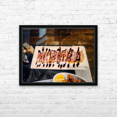 Slices of Temptation invites you into an intimate moment at the table—where food isn't just consumed, it's admired. With glistening slices of cured meat, sharp raw onion circles, and a glossy balsamic glaze arranged with seductive precision, this image is the embodiment of culinary lust. The warm lighting and rustic floor textures contrast with the sleek white plate, making this an irresistible piece for any kitchen, restaurant, or contemporary home. Let it hang in your space as a reminder that temptation can be tasteful—and beautiful.