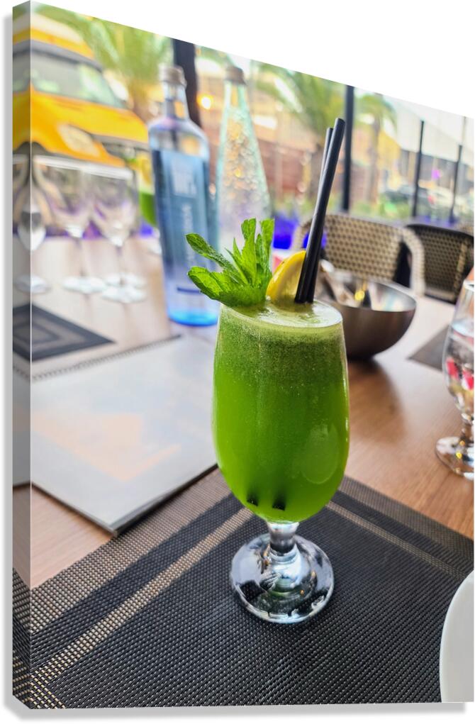 Immortalizes the precise moment when indulgence meets art. With rich emerald tones and a crown of mint and lemon, this drink is more than refreshment—it’s a testament to craftsmanship. Set against a backdrop of refined dining, this photo oozes contemporary charm and sensory allure. As wall art, it becomes a bold yet calming statement—a splash of color, a spark of freshness, and a celebration of life’s little luxuries. Perfect for bistros, kitchens, or anyone who drinks in beauty as much as flavor.