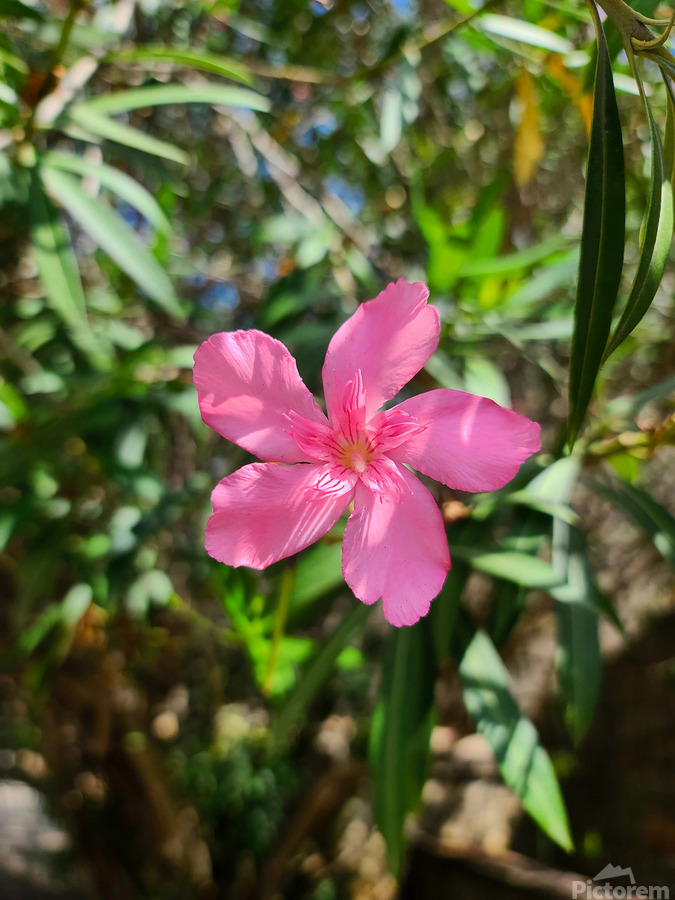 “Sun-Kissed Solitude” reveals the quiet elegance of a lone pink oleander bloom bathing in afternoon sunlight. Caught in perfect isolation, its del...[+]