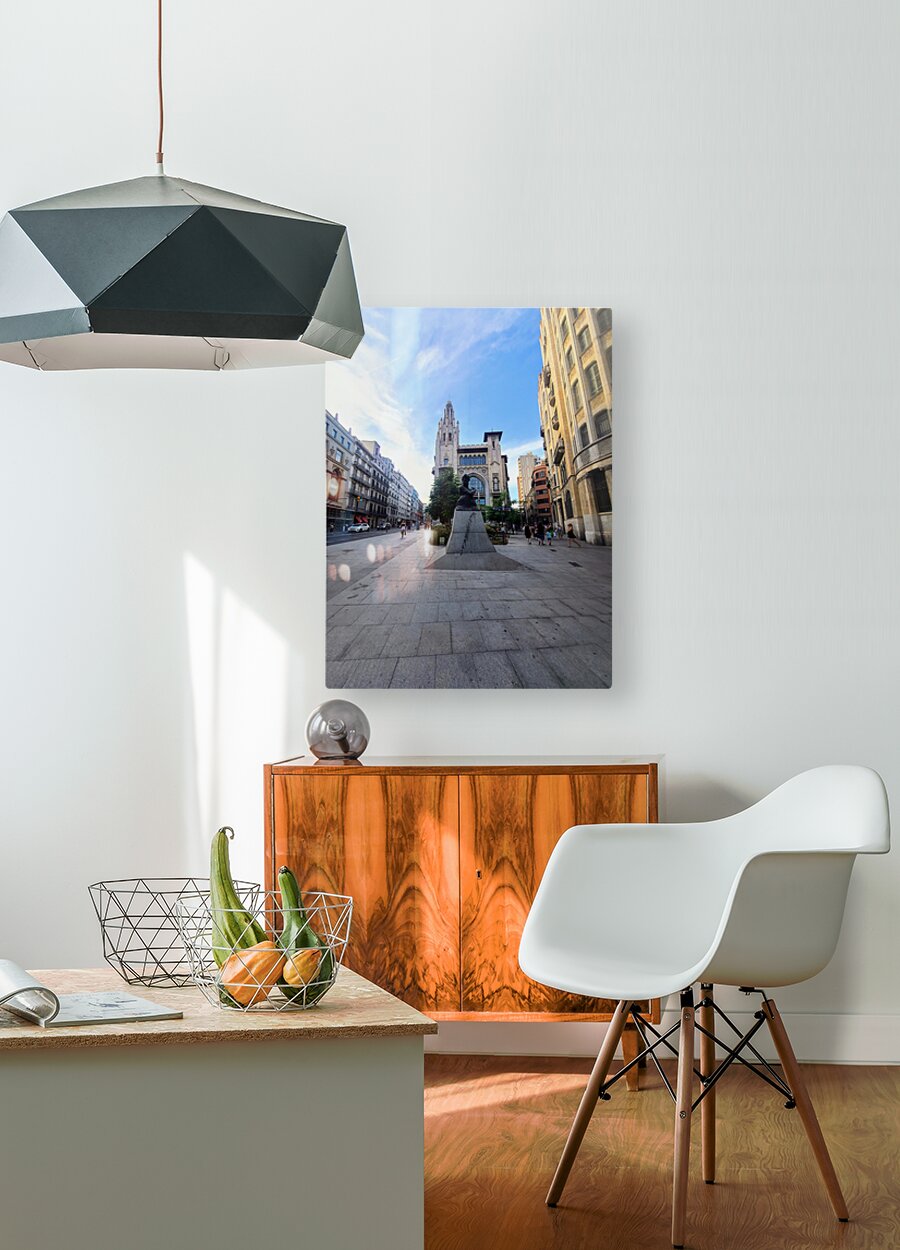 "Sanctuary in the Square" captures the rare beauty of stillness in the middle of a living city. The stone pathway gently funnels the eye toward an ornate cathedral, while a seated statue anchors the viewer in a meditative pause. The surrounding buildings lean in like silent witnesses, offering a frame of timeless presence under a gentle blue sky. As wall art, this piece becomes a visual retreat—ideal for meditation spaces, reading corners, or any room craving calm energy. It reminds us that even in the most bustling places, there are sanctuaries carved out by time, stone, and silence.