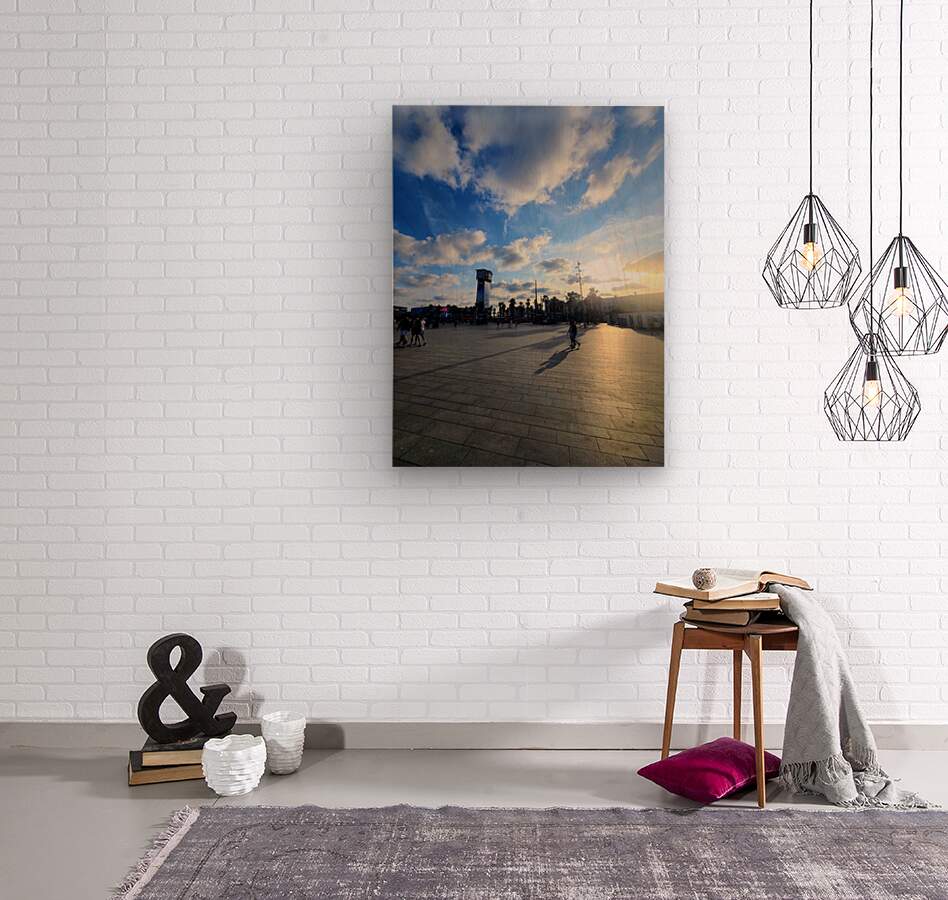 Barcelona Travel Collection. This was a walk along the beach opposite the water as the sun was setting. This striking scene captures the brief moment just before sunset, where the bustling energy of a city square softens under golden hues. Silhouetted figures stretch across glistening pavement, their shadows long and poetic, stretching toward the viewer. Above, a dynamic sky of cotton clouds rolls gently through fading blue, amplifying the stillness below. As a piece of wall art, Where Light Finds the Silence invites the viewer to pause to reflect on the quiet that exists even in crowded spaces. It's a reminder that peace isn't always about solitude it can bloom right in the middle of movement, between footfalls, beneath a vast sky. Ideal for living rooms, libraries, or open office areas where stillness meets creativity.