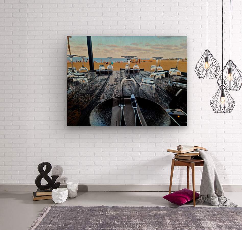 Barcelona Travel Collection. This was taken at the Cordoba Restaurant in Barcelona. The empty glasses stand poised like sculptures, waiting for the hush of the sea to give way to laughter, clinking, and stories. This photograph captures the sacred pause before a shared meal — the stillness just before joy. A rustic wooden table, polished by salt and time, frames the quiet promise of connection. The ocean, blurred but infinite, breathes in the background. As a piece of wall art this brings the energy of potential, a moment just before something beautiful begins. It evokes themes of anticipation, connection, and calm. Perfect for dining areas, hospitality settings, or contemplative corners where conversation flows.