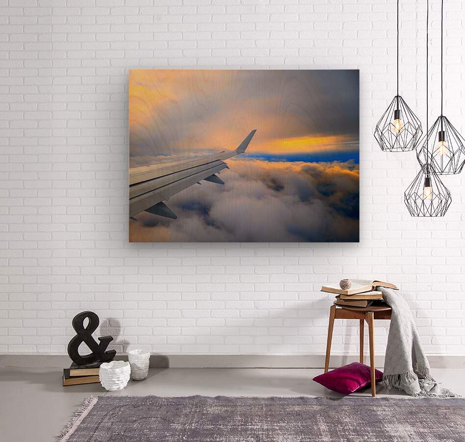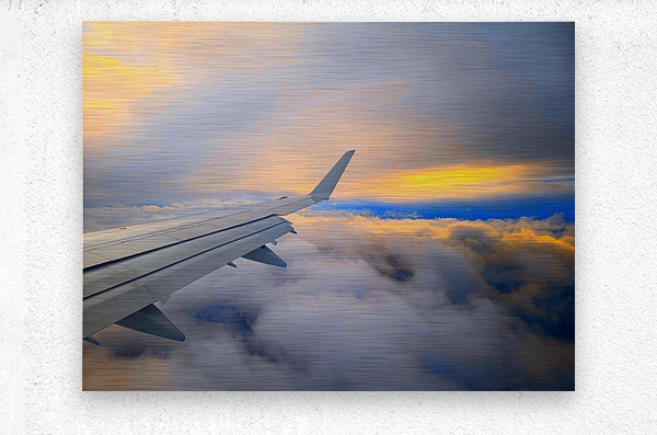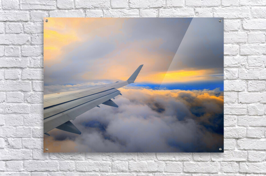 Soaring above a sea of clouds, this image captures the serene beauty of dawn as the first light of sunrise meets the endless sky. The airplane’s wing stretches gracefully toward the horizon, guiding the viewer through a canvas of glowing golds, soft blues, and fiery oranges. It’s a moment of quiet awe—an invitation to chase dreams, seek adventure, and embrace the magic of new beginnings. Perfect for travel lovers and dreamers alike, this piece brings the feeling of flying into the sunrise right into your space.