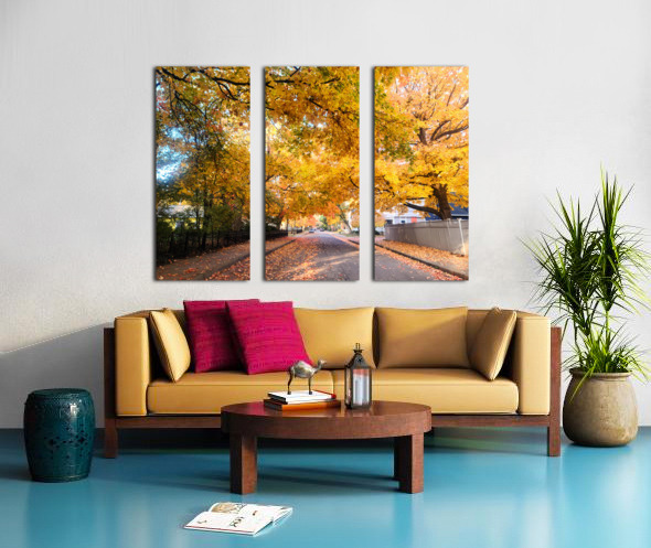 Colors of Fall Collection. A quiet neighborhood street transformed by a canopy of golden maple leaves. The vibrant yellows and warm oranges glow under the soft afternoon light, creating a dreamy tunnel that invites you to slow down, breathe in the crisp air, and get lost in the moment.