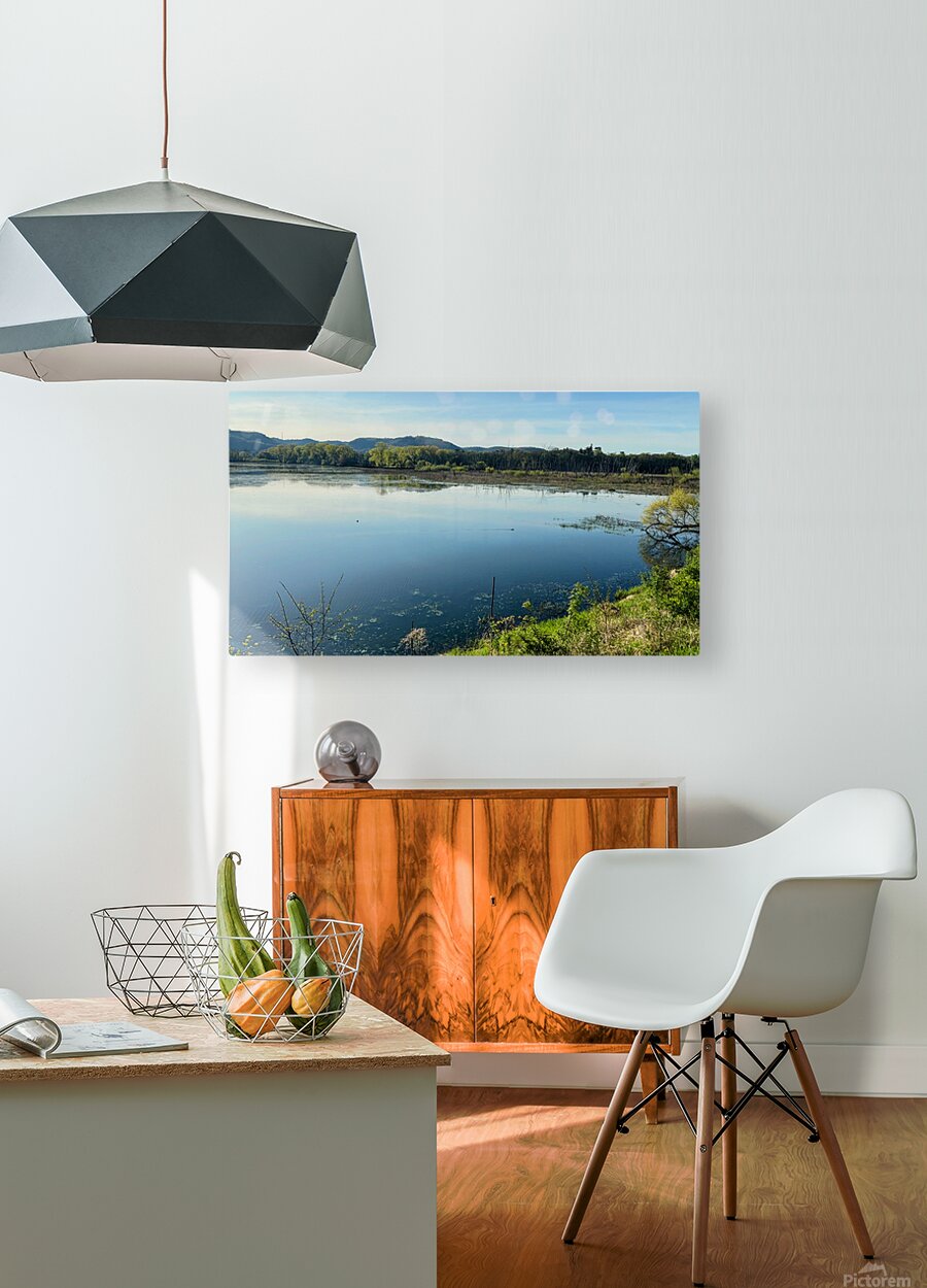 Serene Lakeside View with Forest and Hills Picture Frame Printing