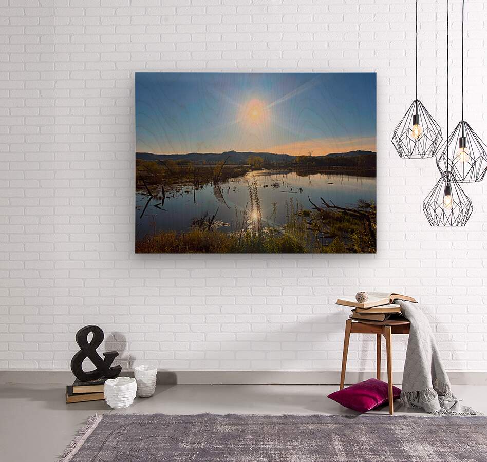 ABOUT THIS ARTWORK: SUNRISE OVER TRANQUIL WETLANDS WITH SUNBEAM REFLECTION