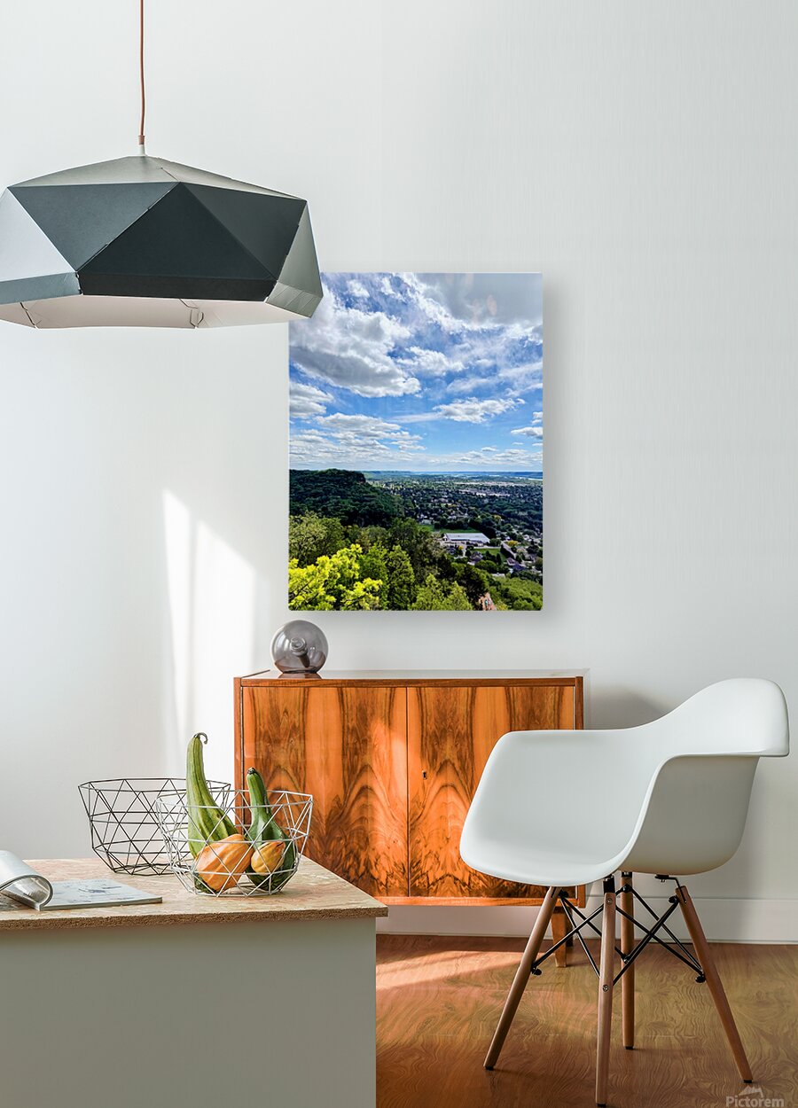 A vibrant overlook bursting with color and charm. This sun-kissed town is wrapped in greenery and scattered clouds, offering a perfect balance of structure and wild. A beautiful tribute to small-town life and the warmth of familiarity.