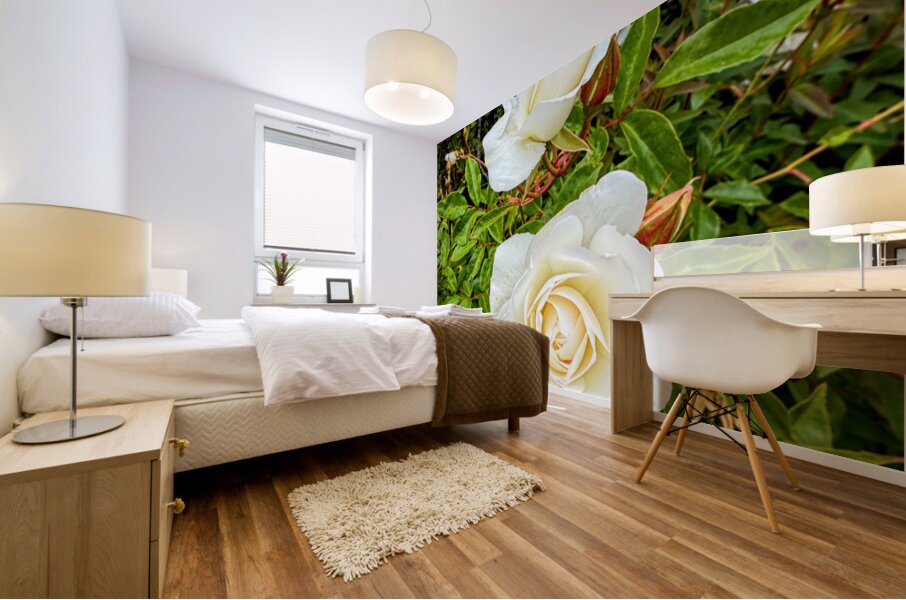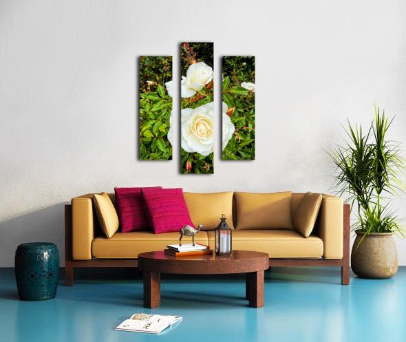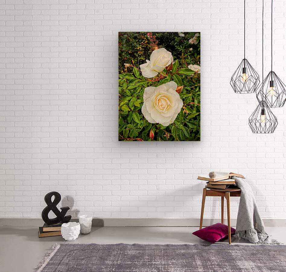 The roses, gleaming with a delicate sheen, evoke porcelain — timeless, fragile, yet resilient. They float amidst green whispers, untouched by haste. The image balances stillness with presence, ideal for curated spaces that invite clarity and grace. As wall art, it lends your room a fresh exhale — perfect for entryways, spas, or studios that seek to channel simplicity and natural refinement.