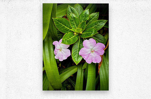 Side by side, these twin Impatiens bloom with quiet harmony—mirroring one another while grounded in a shared nest of lush foliage. It celebrates the simple beauty of connection, symmetry, and presence. Each petal reflects the other in form and tone, like a visual whisper between companions. Perfect for spaces focused on relationships or duality—bedroom walls, couple’s spaces, or mindfulness nooks—this piece brings balance and soft emotional resonance to any environment.