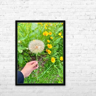 Like a topographic map drawn by the wind, this dandelion puffball reveals a quiet complexity. Cradled between fingers and backed by a field of glowing golden blossoms, it suggests both structure and surrender. A natural cartography of fleeting dreams, drawn in the softest lines. Hang this image where intention meets imagination. It speaks to the wanderer, the planner, the dreamer—those who map their lives not just in steps, but in softness. A perfect addition to spaces that celebrate introspection and subtle adventure.