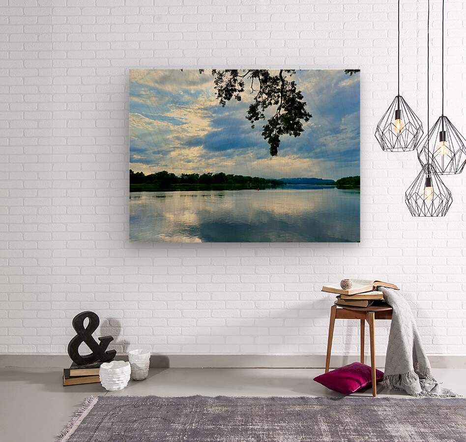 A stretch of water carries the weight of clouds above, veins of light and shade coursing between them. Trees rest at the edges, letting nature breathe in rhythmic symmetry. The sky speaks, but gently, like a lullaby only the patient hear. This piece brings a soulful balance to your space, aligning head and heart through the serene geometry of nature.