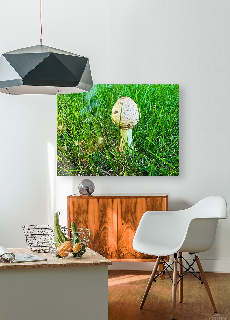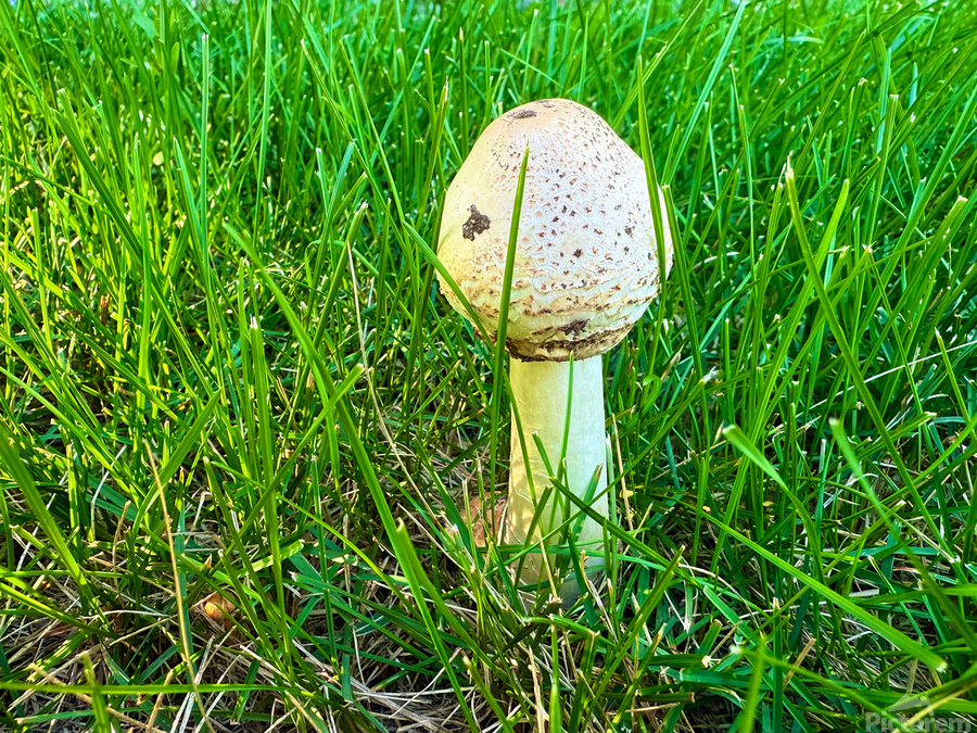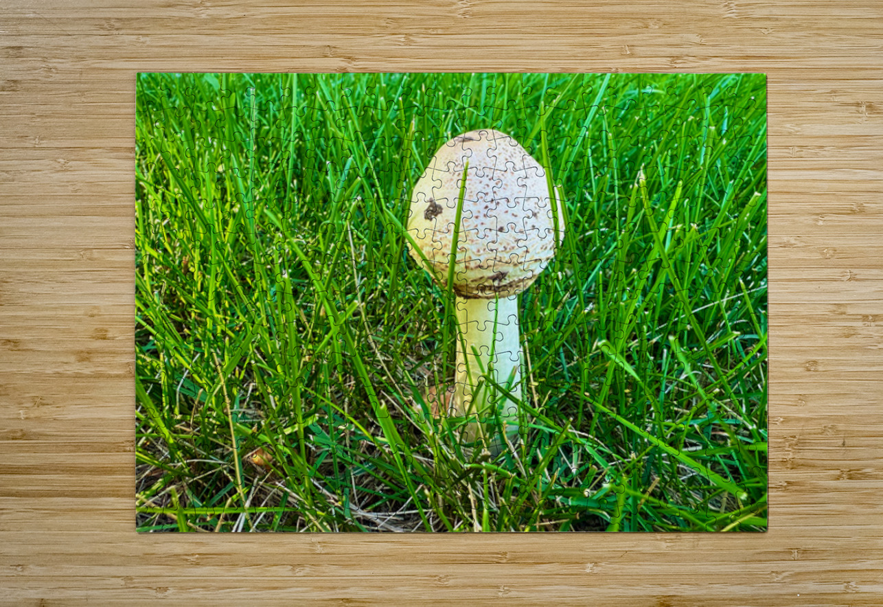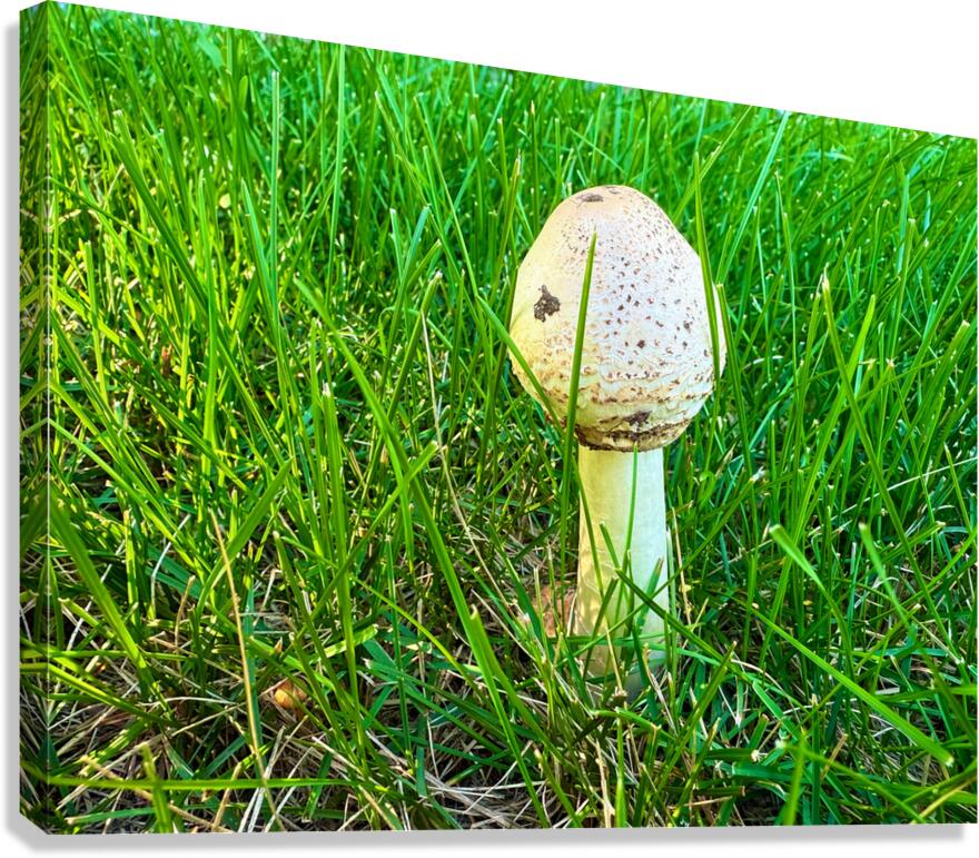 This photograph captures a solitary mushroom emerging boldly from a thick bed of vibrant green grass, basking in early sunlight. Its speckled, dome-shaped cap stands like a natural sculpture, unassuming, yet remarkably intricate. The mushroom, though simple, stands as a resilient artifact of seasonal transformation and unseen life cycles. As wall art, this piece invites introspection and reverence for the unnoticed miracles around us. It whispers of life quietly unfolding just outside our daily awareness. A humble mushroom becomes a metaphor for persistence, balance, and the quiet force of nature. Ideal for meditation spaces, offices, or any room needing a subtle yet profound anchor to the natural world.