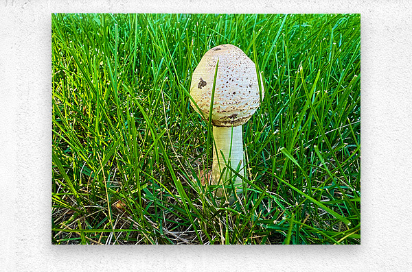 This photograph captures a solitary mushroom emerging boldly from a thick bed of vibrant green grass, basking in early sunlight. Its speckled, dome-shaped cap stands like a natural sculpture, unassuming, yet remarkably intricate. The mushroom, though simple, stands as a resilient artifact of seasonal transformation and unseen life cycles. As wall art, this piece invites introspection and reverence for the unnoticed miracles around us. It whispers of life quietly unfolding just outside our daily awareness. A humble mushroom becomes a metaphor for persistence, balance, and the quiet force of nature. Ideal for meditation spaces, offices, or any room needing a subtle yet profound anchor to the natural world.