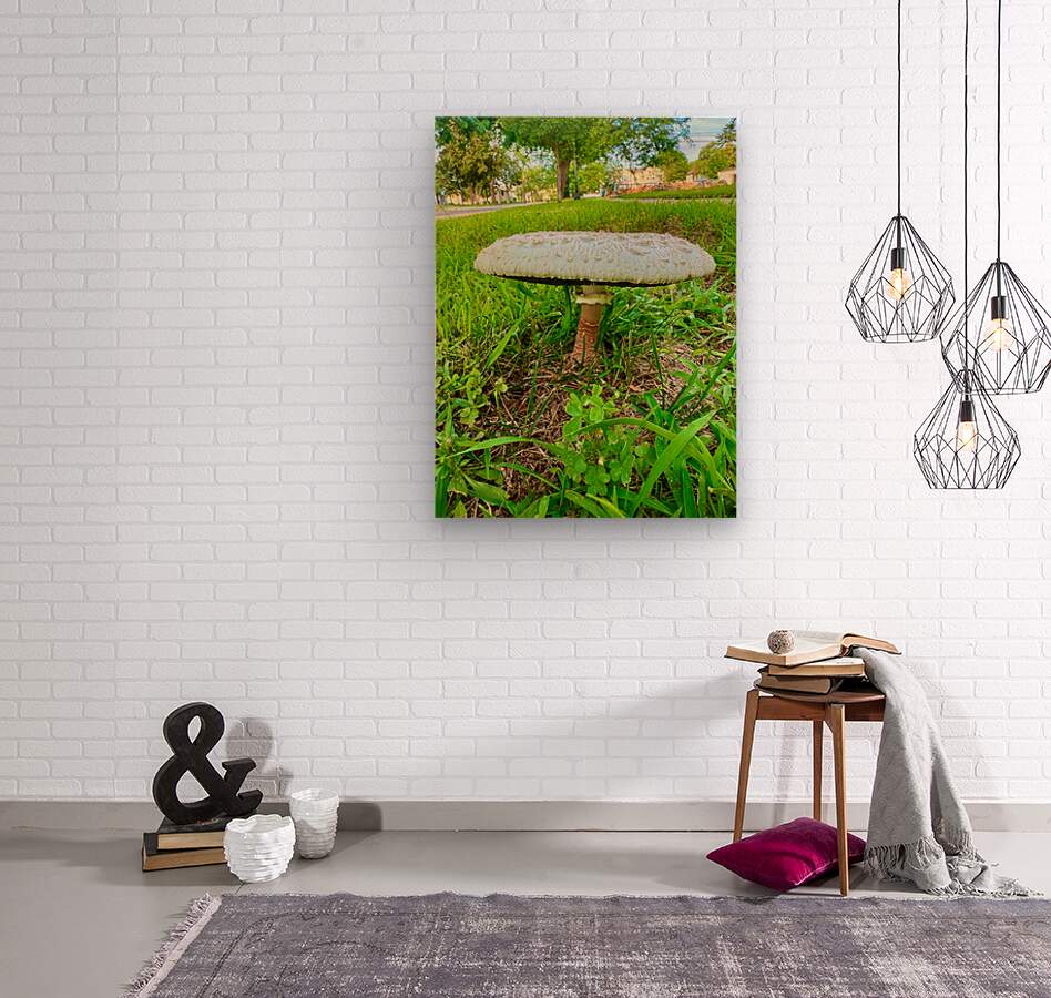 A lone mushroom emerges from the vibrant green, caught mid-glow in nature’s quiet rhythm. Its wide, fibrous cap hovers like a protective umbrella over the tender grass, embodying strength and fragility all at once. Perfect for a contemplative corner or minimalist setting, this artwork invites mindfulness. It speaks of unnoticed grace and nature’s perfect imperfections. It encourages us to slow down and observe deeply, a reminder that even the smallest life form holds presence and beauty.