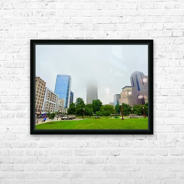 Get this artwork "Foggy Skyline with Park" in a framed print.