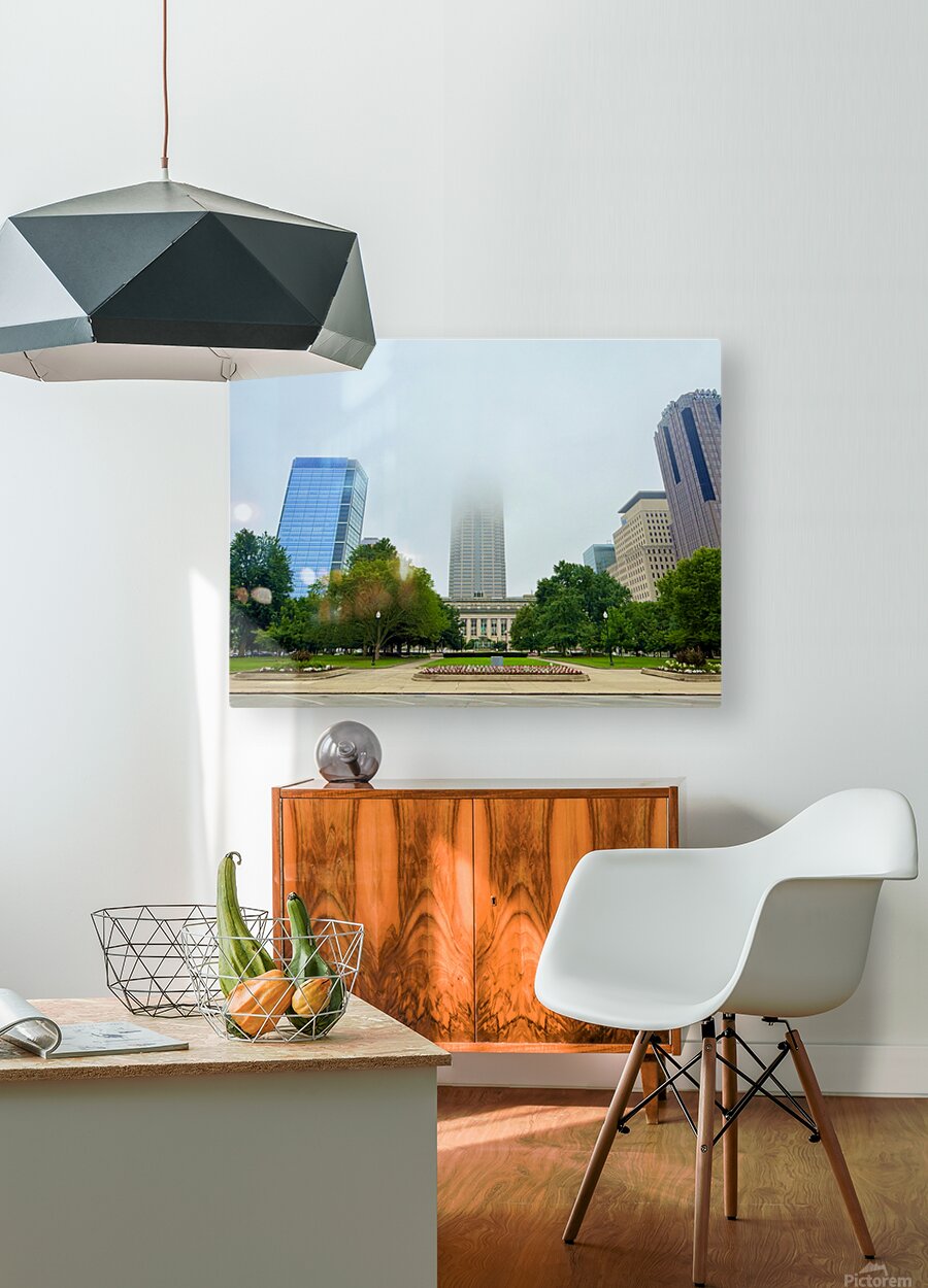 Evokes the surreal calm of fog-shrouded architecture. This piece speaks to the mystery and scale of cities, serving as a powerful visual for office wa...[+]