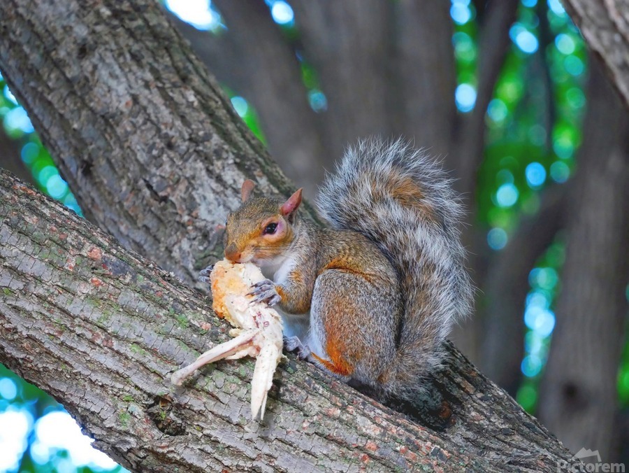 This was taken in DC park. The squirrel was munching on a chicken wing that some tourist had left.