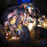 Winter Wonderland Collection. Despite the cold, winter can bring beautiful scenic views with glistening snowfall in nature. This underneath the heavy later of snow is a bush decorated with Christmas lights.