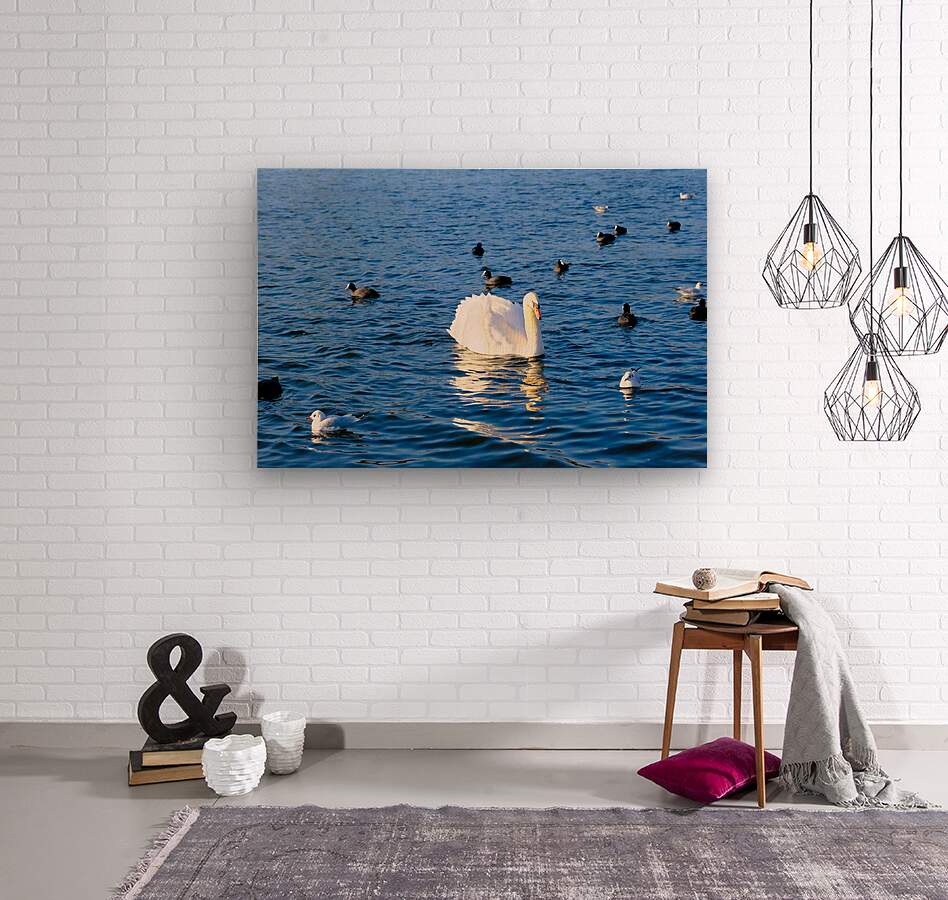 Swan Collection. This captivating wildlife photograph features a radiant white swan gliding across shimmering blue waters, surrounded by a lively gathering of coots and gulls. This artwork is perfect for anyone who loves nature, wildlife, and peaceful aquatic scenery. Its calming palette and harmonious balance make it an ideal choice for living rooms, bedrooms, offices, wellness spaces, or coastal-themed interiors. Printed with Pictorem’s premium materials, this piece delivers museum-quality sharpness, vibrant color accuracy, and lasting durability transforming a simple wall into a soothing escape to nature.