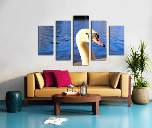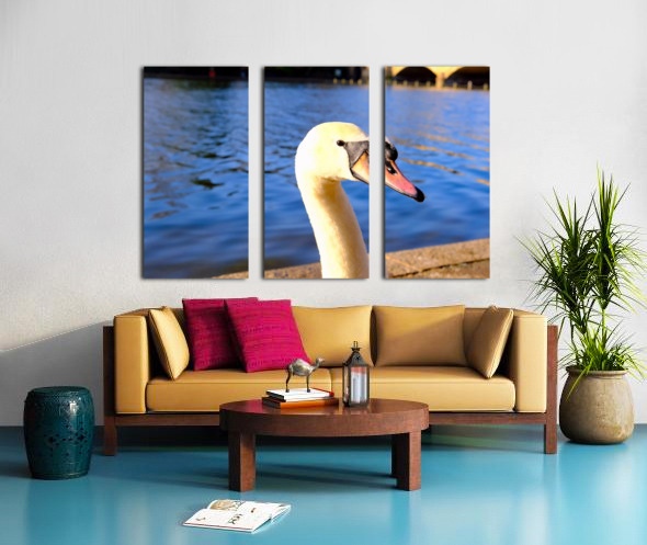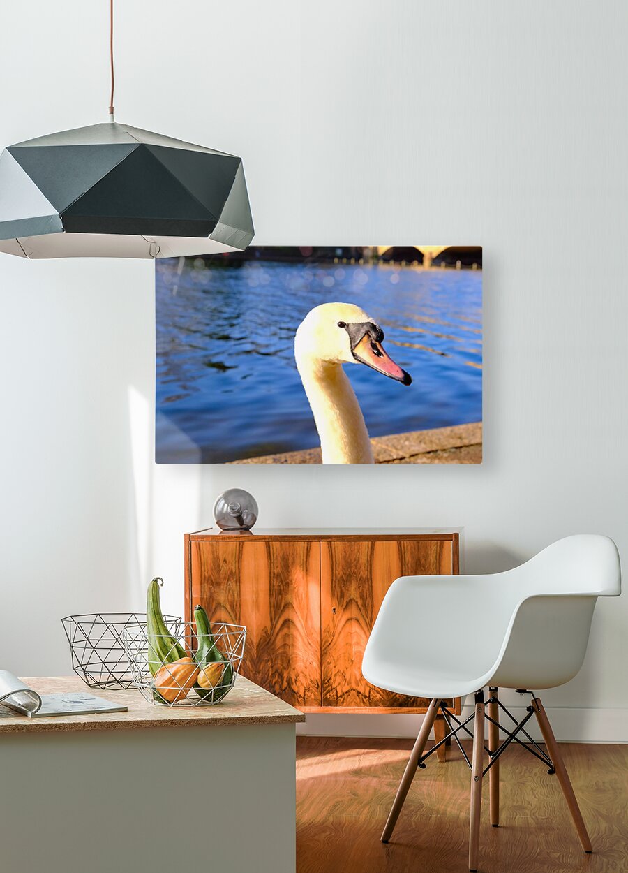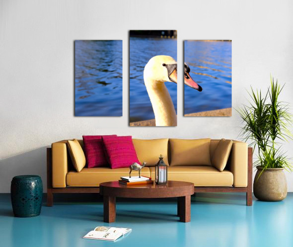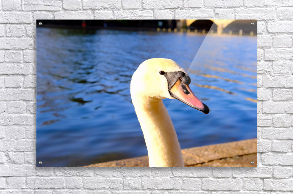 Swan Collection. This stunning close-up captures the serene elegance of a swan by the riverside. The soft golden tones on the swan’s feathers contrast beautifully with the deep blue water, symbolizing grace, purity, and tranquility. As wall art, it evokes a sense of calm and sophistication, perfect for a living room, bedroom, or office space seeking a peaceful, natural touch.