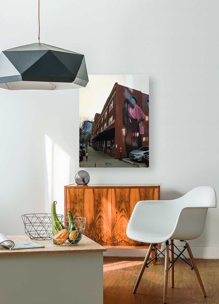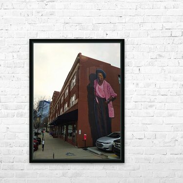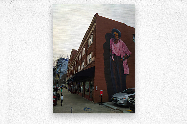 Street Art Collection. This is a building-size mural of Mari Evans on Mass Ave in downtown Indianapolis. Offers a glimpse into the heart of a city where art meets activism. The bold imagery and warm color palette make it a compelling visual focal point, while its subject represents cultural pride and literary greatness. Hanging this print infuses a space with both visual impact and cultural significance, sparking conversations about community and creative expression.