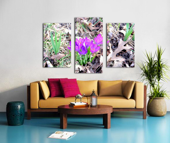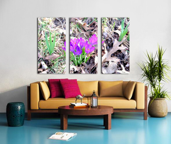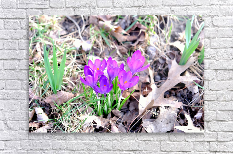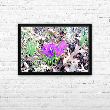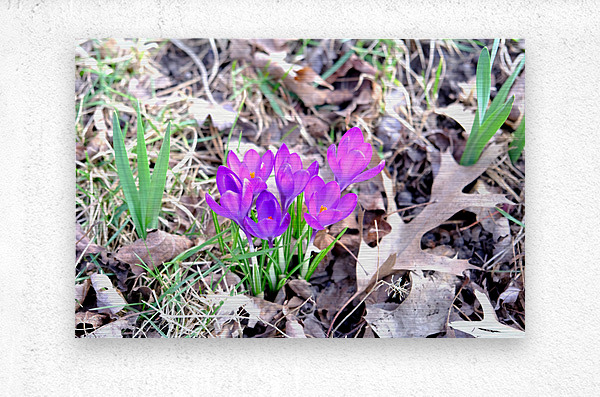 Blooms of Joy Collection. Captures the determined beauty of purple crocuses emerging from a bed of last season’s fallen leaves. These early bloomers...[+]