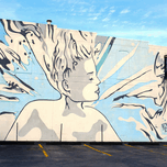 This mural was painted on the entire side of a building on Mass Ave. This mural celebrates the power of breath and imagination, as the figure releases waves of energy into the world. The light hues create a sense of peace, while the bold lines add strength and determination. As wall decor, it symbolizes renewal and creative expansion, making it ideal for spaces that aim to inspire motivation, growth, and artistic appreciation.