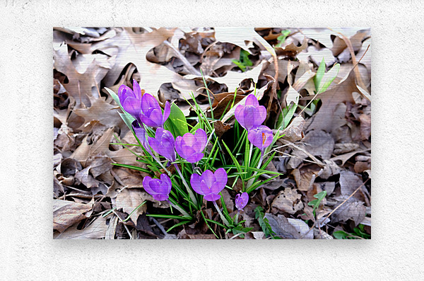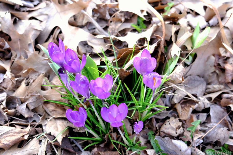 Blooms of Joy Collection. This piece perfectly encapsulates the scene of purple crocuses emerging through winter’s fallen leaves. Crocuses are amon...[+]