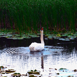 There is a tension in the quiet. A swan, statuesque and serene, waits alone in a pond bordered by lush reeds and soft water lilies. Its head tilted up...[+]