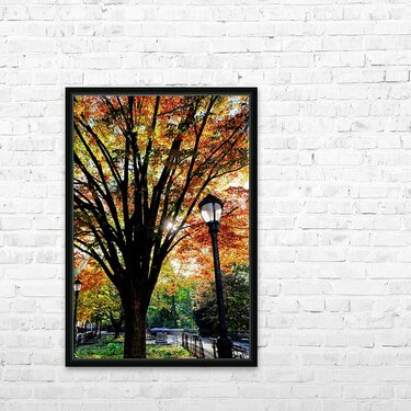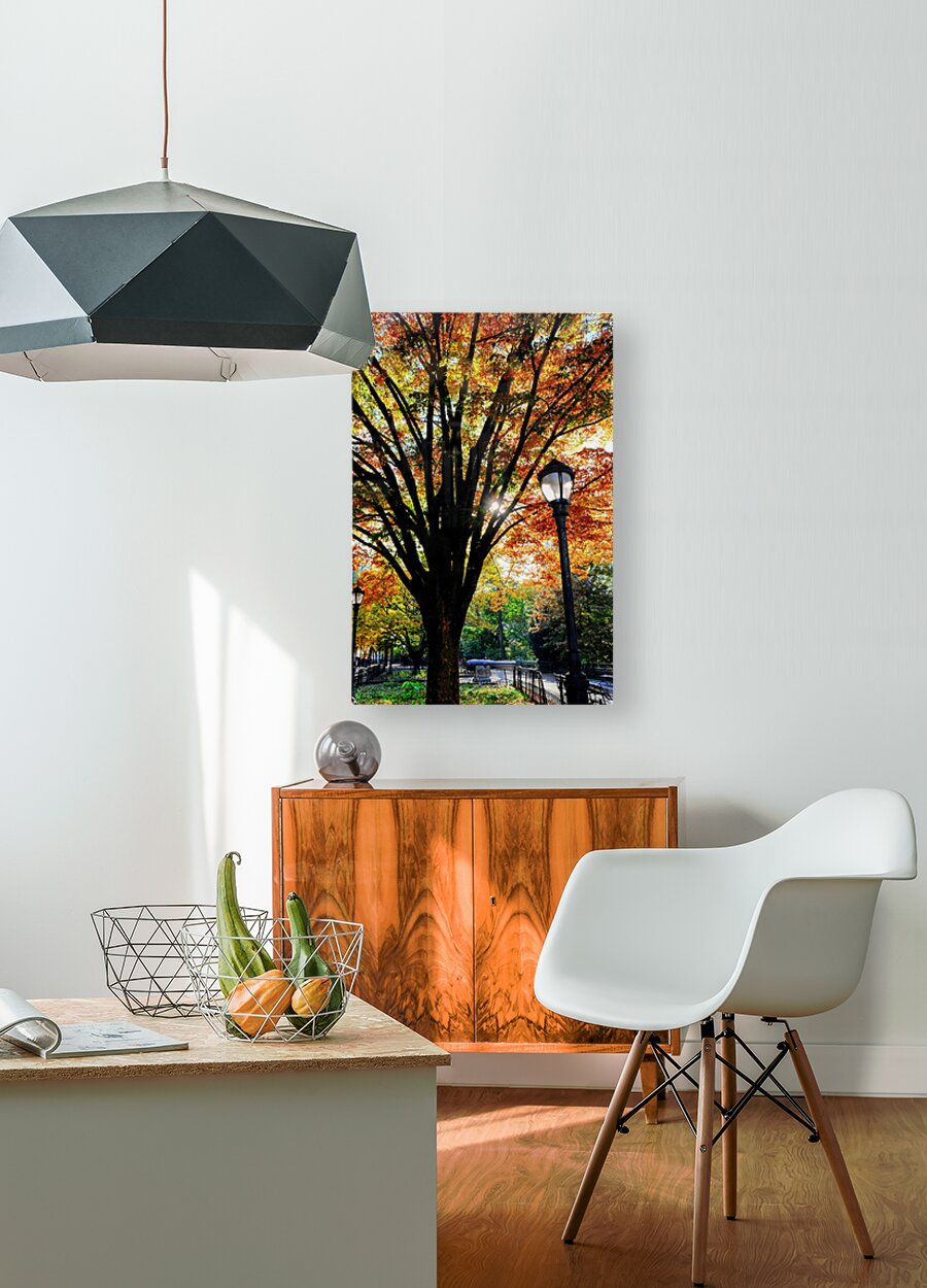 Riverside Park Collection. This expansive and vivid portrayal of Riverside Park in the fall offers a full, immersive experience of the season’s glory. The photo showcases the entirety of the scene, from the towering, color-rich tree at center to the neatly framed walkways and vintage lamp posts that line the park’s path. As a wall art piece, this image brings with it an air of openness, balance, and seasonal reflection. It is perfect for those seeking to invite nature indoors without sacrificing elegance. Whether hung in a dining room, large hallway, or corporate space, this piece tells a story of transition, peace, and enduring beauty.