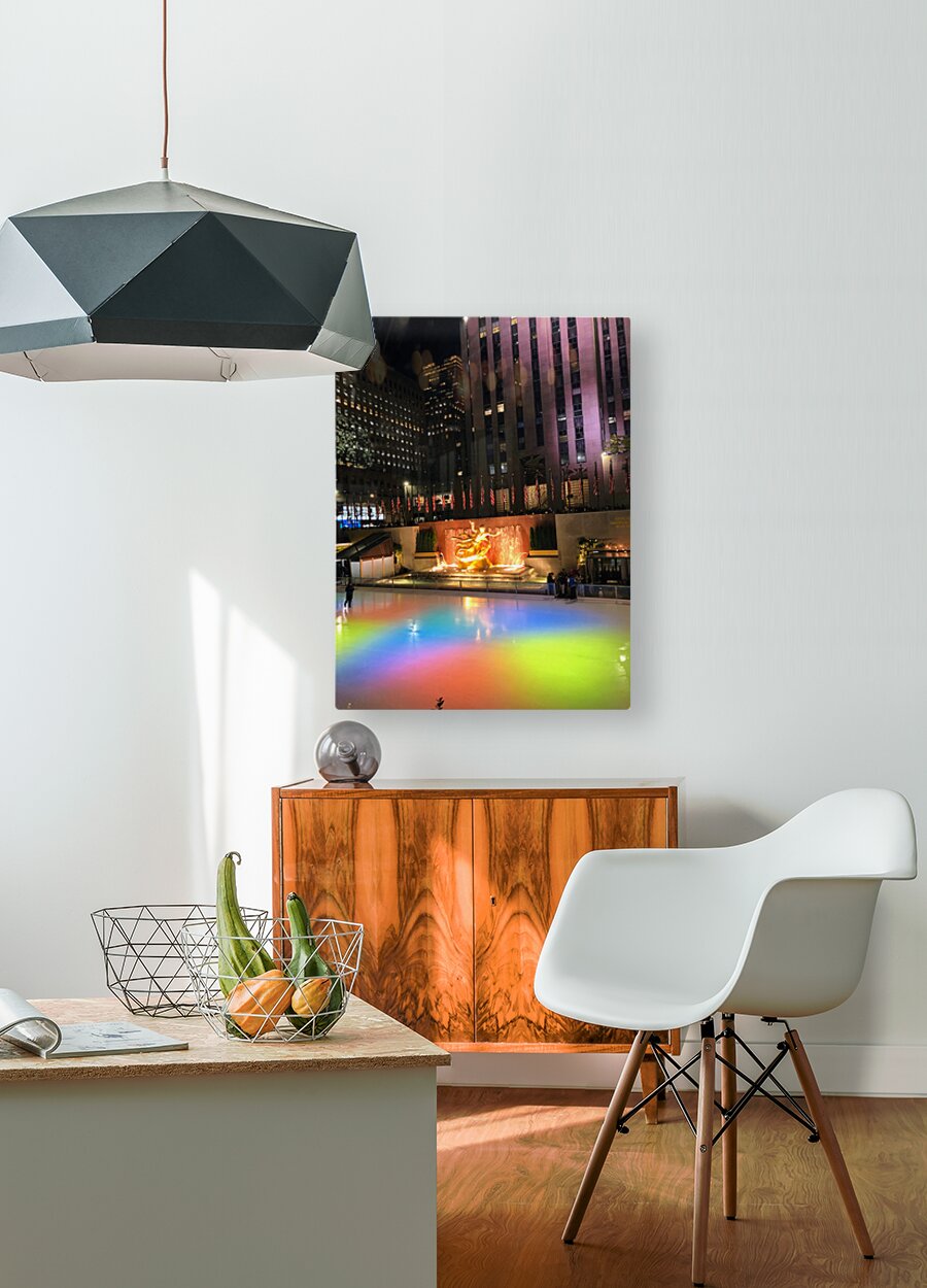 New York City Collection. In this striking image, the Rockefeller Center transforms into a prism of color beneath the city lights. The rainbow ice reflects not just illumination, but the energy and diversity of the city itself. Displaying this as wall art brings a dynamic mix of history, festivity, and color into any environment, perfect for urban art collectors and NYC lovers alike.