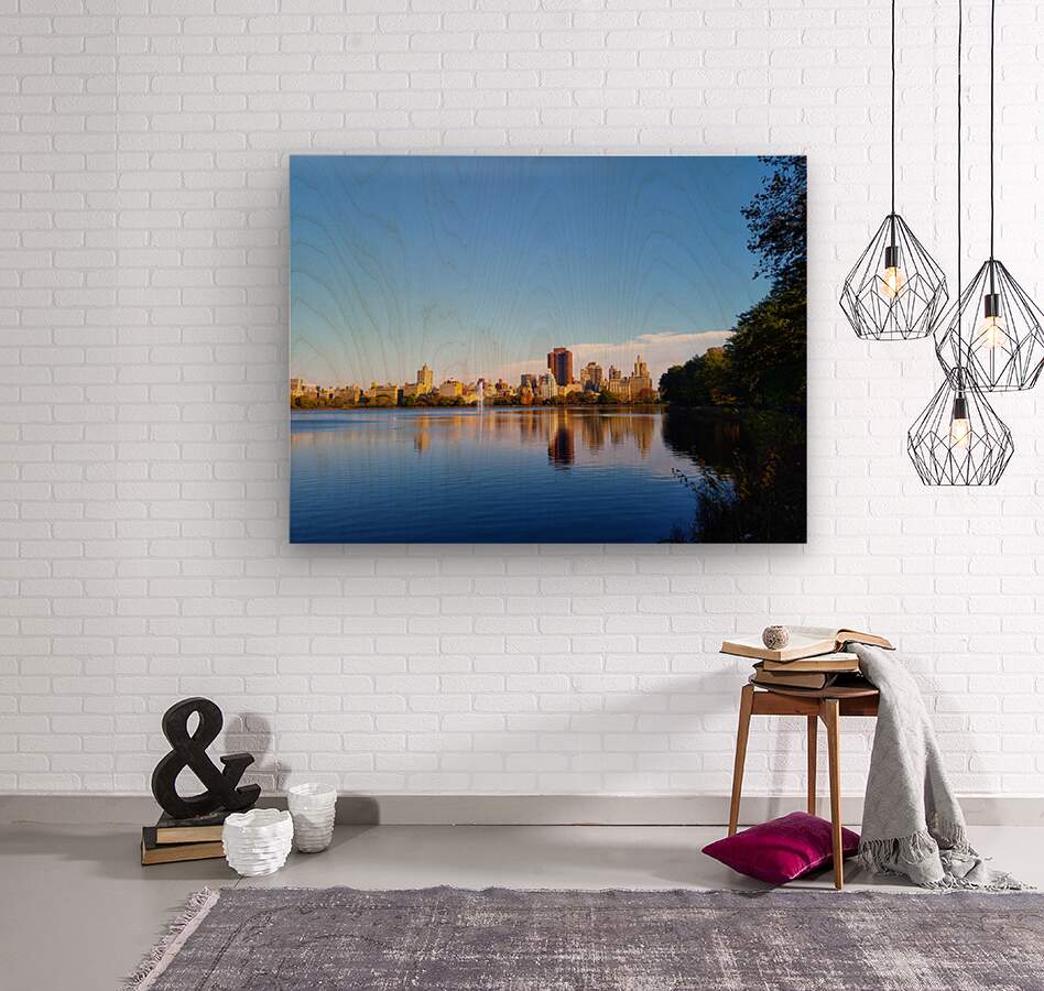 Central Park Reservoir Panoramic Skyline Southview. Central Park Collection. New York’s strength meets nature’s grace in this eastward-facing panorama. With architectural texture balanced against the lake’s surface and a delicate tree canopy, this image celebrates space, light, and visual peace.
