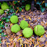 Riverside Park Collection. A cluster of Osage oranges rests among crisp, fallen leaves, creating a serene and slightly whimsical autumn composition. ...[+]