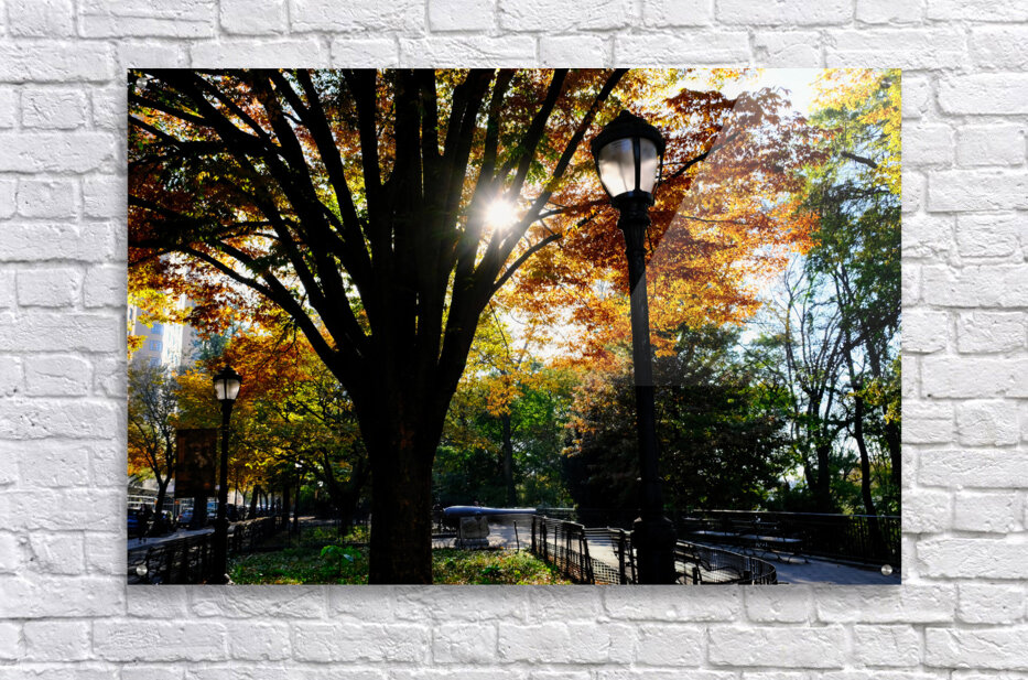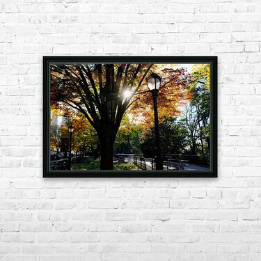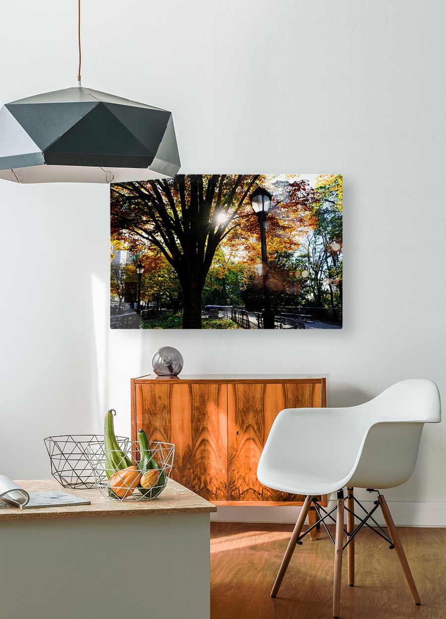 Riverside Park Collection. This serene and thoughtful image transports the viewer into a peaceful moment along a tree-lined path in Riverside Park, where autumn leaves form a glowing canopy overhead. The scene is perfectly balanced between nature’s warm hues and the gentle geometry of the urban design—benches, iron railings, and walkways all subtly guide the eye through the composition. This artwork brings calm, nostalgia, and warmth into any space. It speaks to the quiet magic of city parks, where life slows and reflection is welcomed. Ideal as a centerpiece in a hallway, office, or wellness space, it offers daily serenity through rich natural tones and classic structure.
