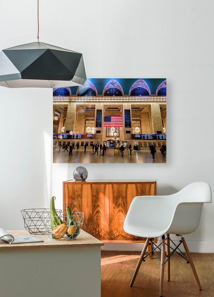 Grand Central Station is one of the iconic places of New York City and one of the busiest places in the world. New York City Collection. "Gathering at Grand Central Station" captures a timeless moment inside one of New York City’s most iconic transportation hubs. Under the celestial ceiling and warm lights of the historic terminal, travelers pause, cross paths, and connect, embodying the daily rhythm of urban life. As a piece of wall art, it evokes themes of movement, tradition, and shared human experience, making it a compelling addition to both modern and traditional interiors.