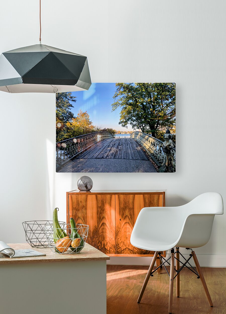 Central Park Collection. This serene capture of a footbridge leading toward the Central Park Reservoir in New York embodies calm and quiet reflection. With autumn foliage framing the scene and soft morning light illuminating the path, this piece invites viewers into a moment of peaceful solitude. As wall art, it evokes tranquility and encourages pause, perfect for any space needing balance and natural charm.