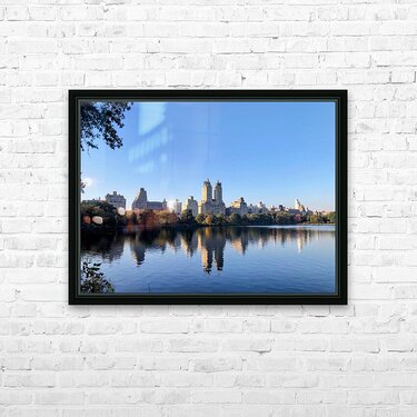 Central Park Reservoir Panoramic Skyline Northview. Central Park Collection. A crisp morning presents Manhattan’s skyline in perfect clarity, mir...[+]