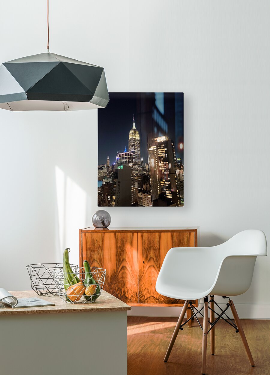 The photo frames a peaceful yet powerful night scene of Midtown Manhattan, with the Empire State Building as its luminous crown jewel. Ideal for office or home decor, it symbolizes both serenity and ambition, capturing the duality of a city that never sleeps.