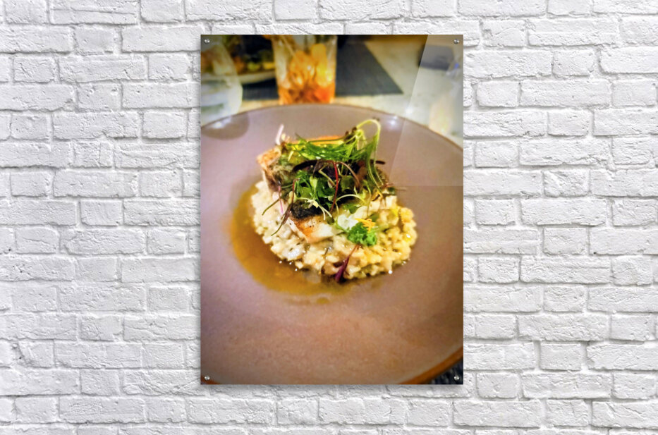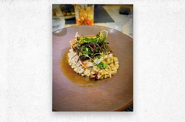 This delicious seabass on top of a risotto dish was served at the Tidal Restaurant in San Diego at the Paradise Point Resort & Spa. This visually rich piece captures the poetic essence of modern gastronomy: a delicately seared sea bass fillet perched atop a creamy, well-tempered risotto, garnished with a vibrant confetti of microgreens. The dish, served at Tidal, is not merely food, it’s an homage to balance and detail.A tribute to restraint, harmony, and the beautiful silence of exceptional taste. As wall art, it evokes memory, atmosphere, and sensory intimacy. It is a visual cue to slow down, to recognize the artistry in everyday rituals like meals, and to honor the invisible effort behind moments of perfection. Ideal for modern kitchens, dining spaces, or boutique culinary studios, this piece grounds a space in elegance and calm. It speaks to lovers of craft, of intentionality, and of living life in delicious detail.