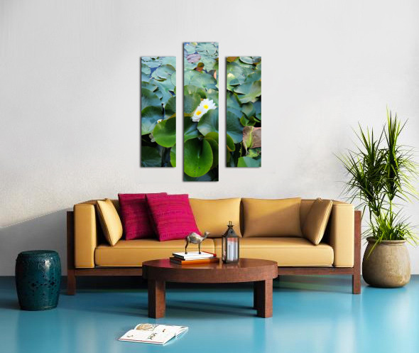Water Lilly Collection. A pair of white water lilies quietly emerge from a protective crowd of lily pads, offering a tender burst of brightness amid the green expanse. This image draws the eye gently toward the center, where the flowers lie cradled in shadow and light, whispering of delicate balance. This photograph invites a deeper sense of calm and attentiveness into any space. As wall art, it symbolizes introspection and the unseen strengths that lie quietly within us. Perfect for environments meant to soothe the soul such as bedrooms, wellness spaces, or reading corners it reminds us that beauty often flourishes away from the spotlight, beneath the surface, held by quiet protection.